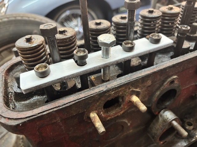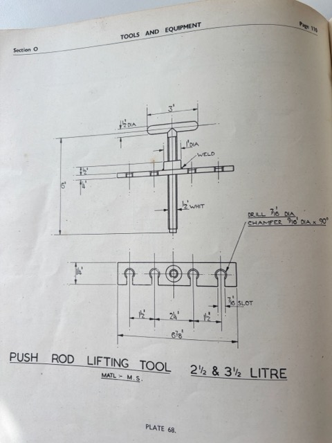I asked the forum again but sadly no-one had any ideas, apart from one chap who said it goes under the push rods and lifts them. Thanks for that… Other people chipped in and said they never used one but they didn’t say how they got past this stage. Then one night - I awoke and had a Eureka moment - perhaps the tool went on the TOP of the cylinder head and when that central ’T’ shaped part in the drawing was rotated, the plate would raise up to the shoulder of the cup at the top of the pushrod and it would then lift all 4 of the Pushrods away from the Cam follower block. Now this was an exciting moment and I spent a happy 30 minutes in my workshop fabricating ’the tool in section O’.