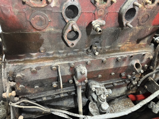 With the carburetors removed that side of the engine block now looks like this: