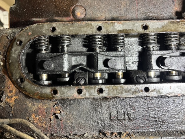 I thought this would be enough of a strip down to enable me to unbolt the cylinder head and the picture below shows the shaft that pushes down on the valves to let fuel in / exhaust gasses out. This is called the ‘rocker shaft’. The valves are above the pistons which makes this style of engine an OHV - ‘Over Head Valve’. Inside the depths of the engine is a camshaft which has one eccentric lobe per valve. As that shaft rotates the lobe pushes up a rod (yep called a push rod) which in turn lifts one side of the rocker which in moving pushes the associated valve DOWN. Strong springs return the valve to its resting place when the lobe of the camshaft is rotated back to zero lift. Pretty simple mechanics really, Fun to rebuild because it *IS* so basic. No electronics or computers needed here.