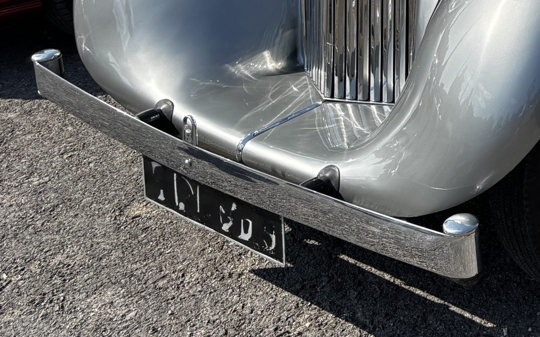 As you can see in the picture above, prewar bumpers are slim and elegant, on first sight they simply look like a flat piece of steel with a graceful loop on each end, finished off with a polished cap. In reality they are very substancial, behind them are 3 spring steel leaves rather like suspension leaf springs, and those nicely rounded ends - are full of lead.